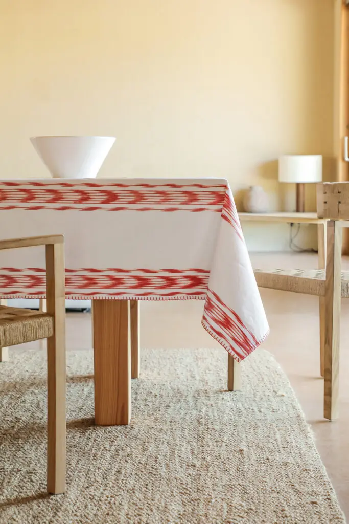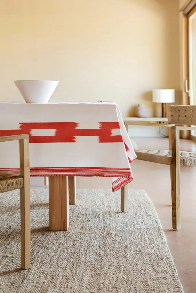 Linen and cotton tablecloth for dining table.